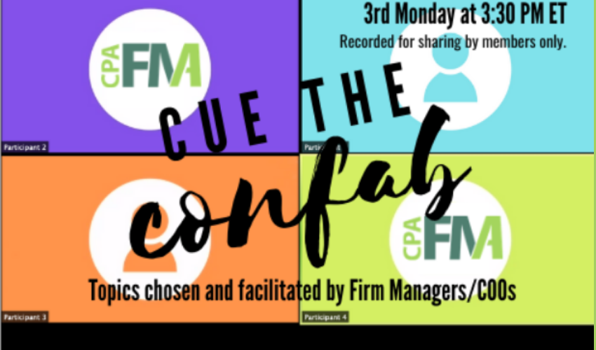 that will take place virtually over Zoom on the third Monday of every month at 3:30 PM ET. The first one is scheduled for July 20, 2020. They will be facilitated by a member of CPAFMA but will be led by those participating. The topics will be broad and participants are encouraged to bring questions, stories, challenges and needs. The first will be on the topic of "How is Re-Opening Going?" Be prepared to hear successes, stories, frustrations, questions, concerns and possibly some failures. This is your opportunity as well to check-in and let your friends know how you are doing during these challenging times. If there are others within your firm who deal with this topic or would benefit from participating, have them register. This program is for everyone at the firm. These sessions will be recorded and shared via